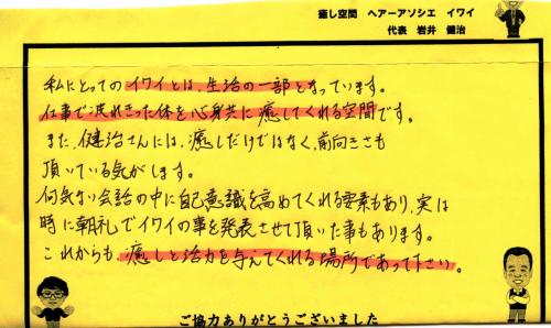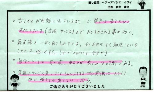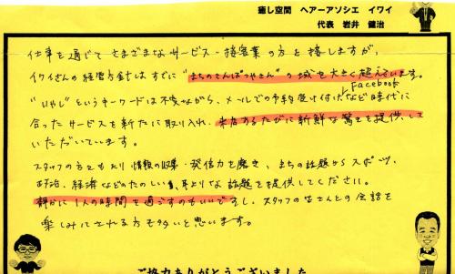 仕事を通じて、さまざまなサービス・接客業の方と接しますが、イワイさんの経営方針はすでに"まちのさんぱつやさん"の域を大きく超えています。