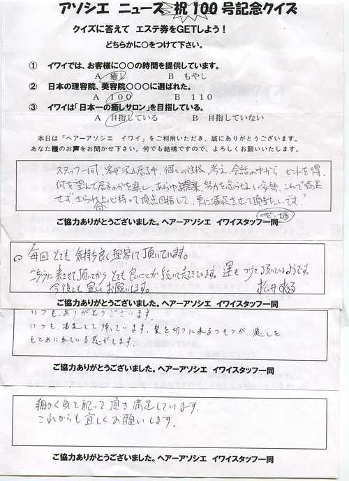 ヘアーアソシエ イワイ をご利用頂き ありがとうございます。
