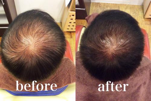 (下記写真は当店のモニターによる6ヶ月の育毛結果です。)