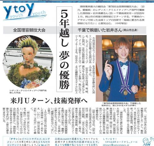 岡山県の代表として全国大会優勝をさせて頂きましたので、地元新聞者様より取材をしてもらいました。
